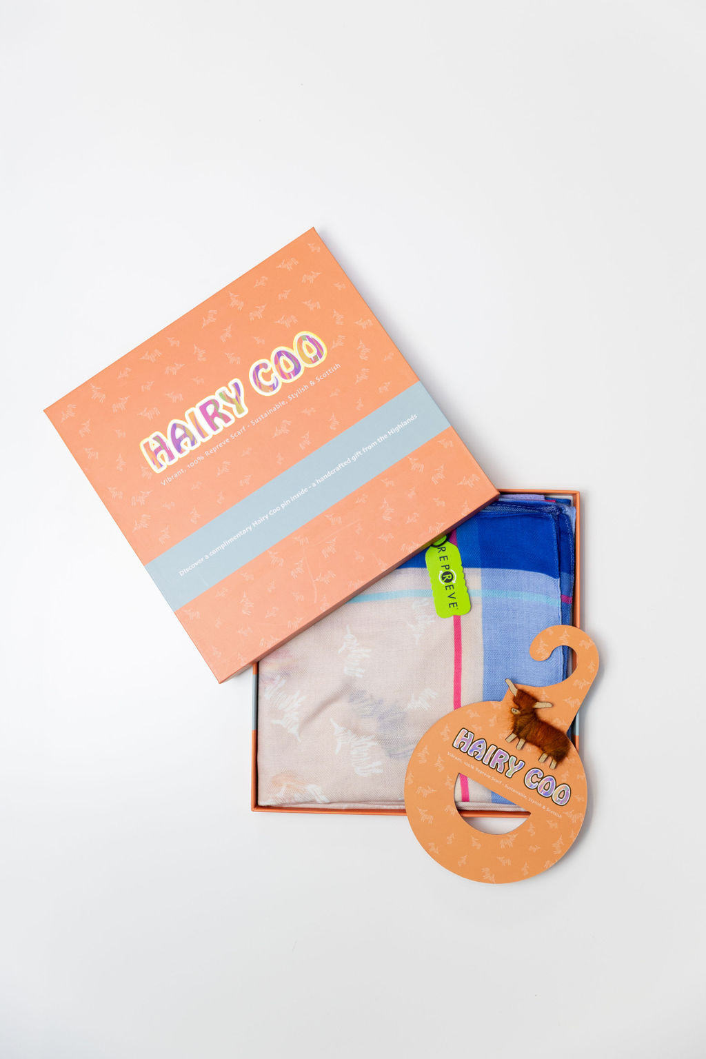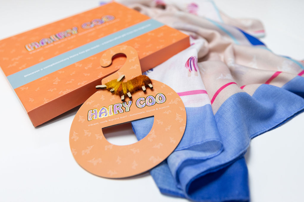 Stunning repreve scarf made form recyled plastic bottles. Comes in luxury gift box with hanger and handcrafed coo pin, giving you the option how to display.