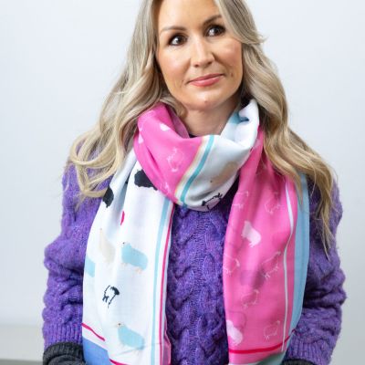 Heather - Bright pinks and blues alongside ewe print