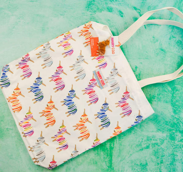 Each bag comes with a handmade Hairy Coo brooch with a bespoke label wrap.