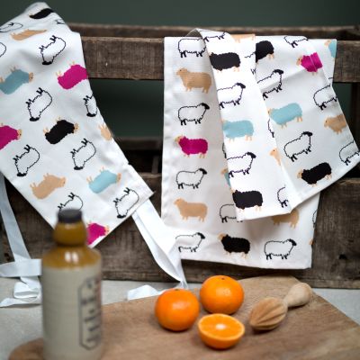 Our tea towels are 100% cotton and printed in the UK with our vibrant Woolly Ewe design.
