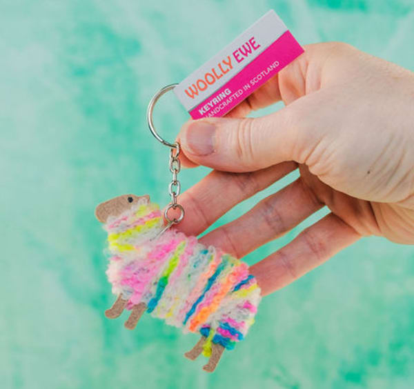 Hand-wrapped keyring in hand-dyed wool. With branded tag
