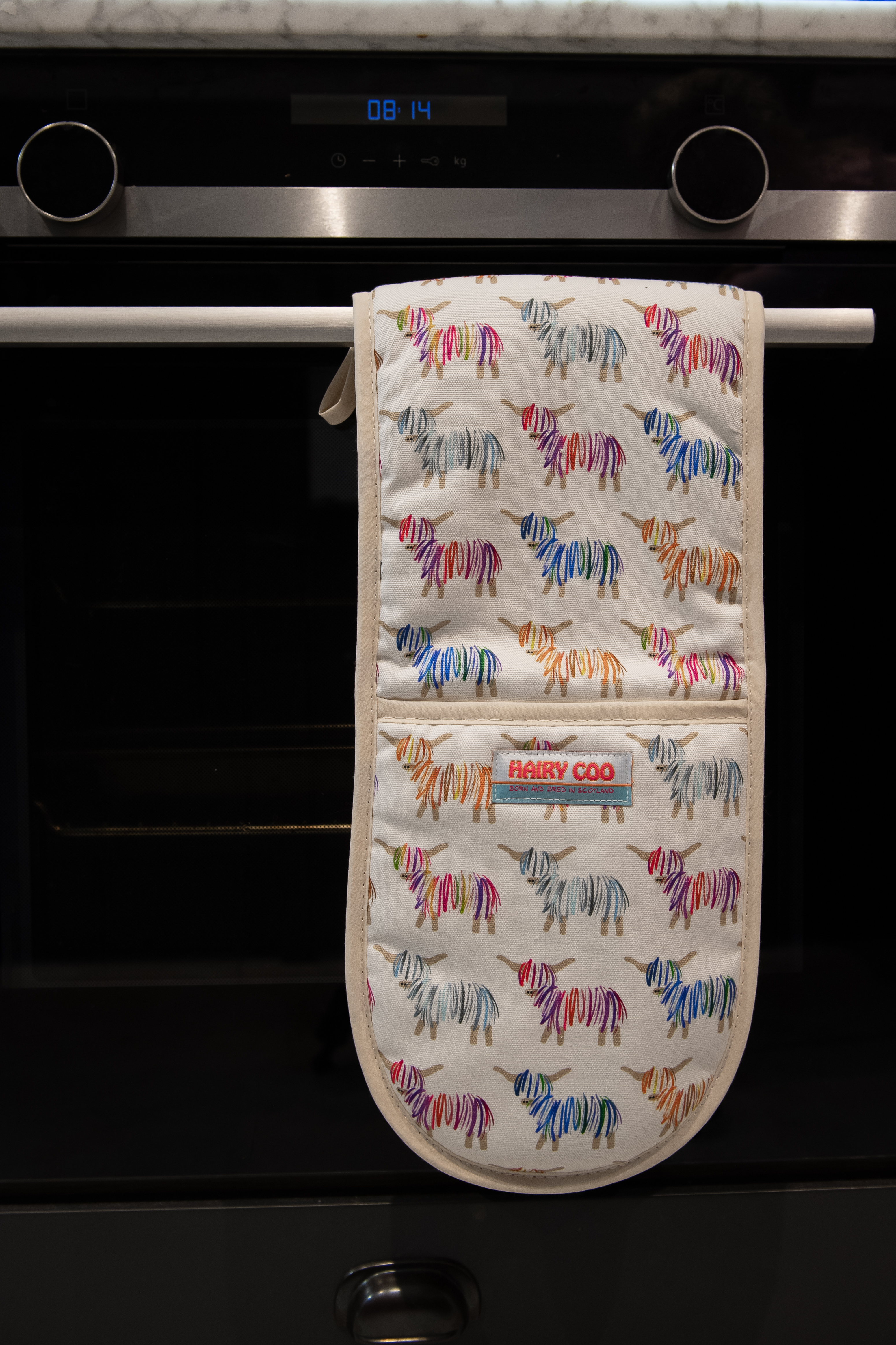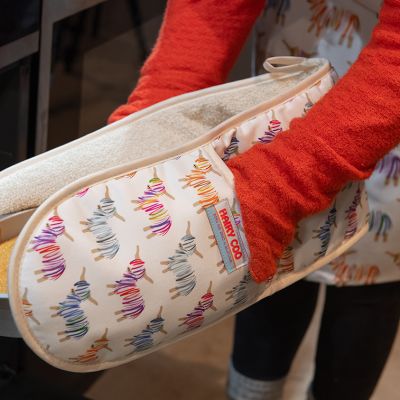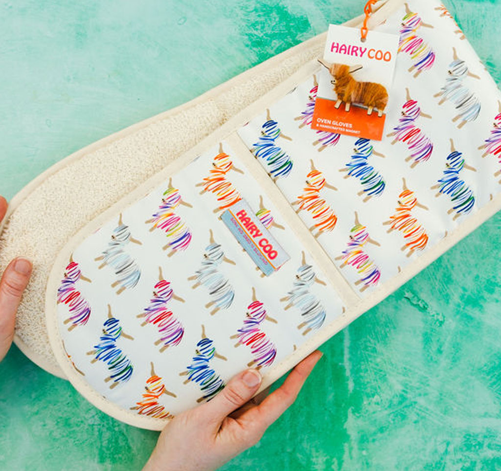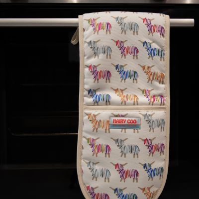 Hairy Coo oven glove, 100% cootton with plush, premium lining. Comes with a complimentary Hairy Coo magnet included.