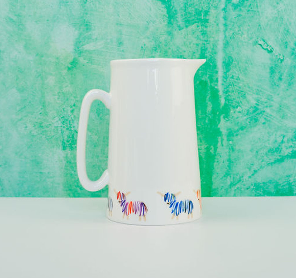 Large 2 pint Bone china jug/pitcher with the iconic Hairy Coo design.